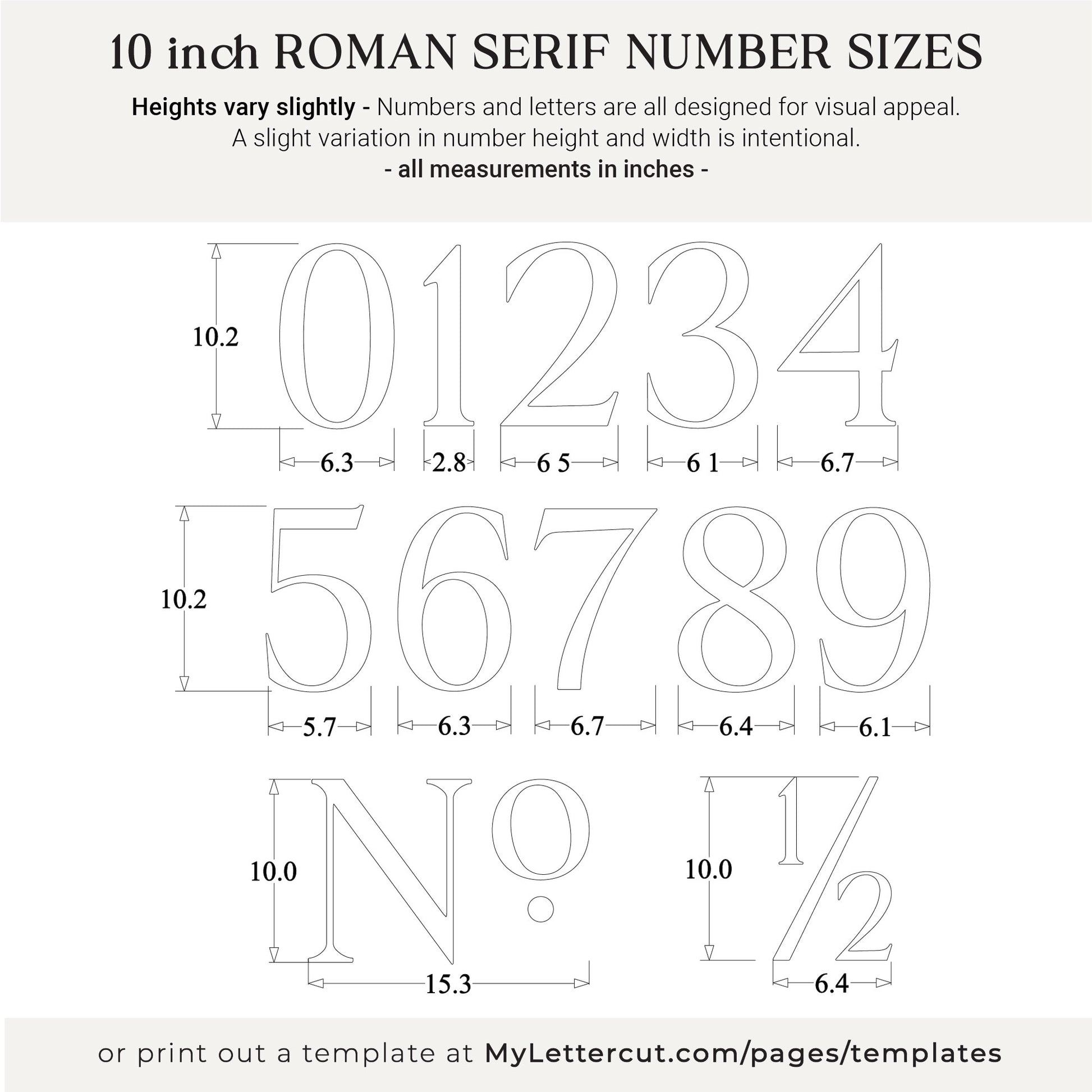 10 inch ROMAN SERIF house numbers for traditional address signs