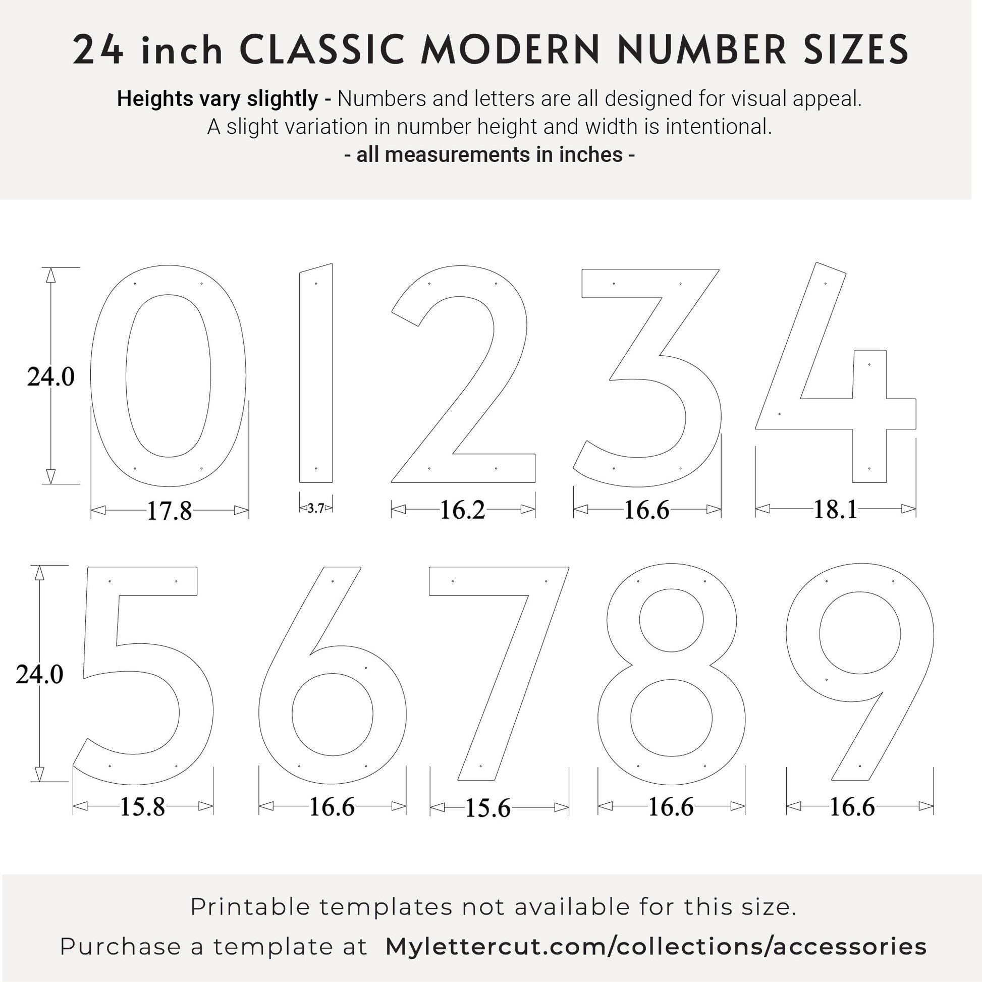 Use a template to get your modern numbers fastened evenly and straight OR to help you decide which size is right for your space.