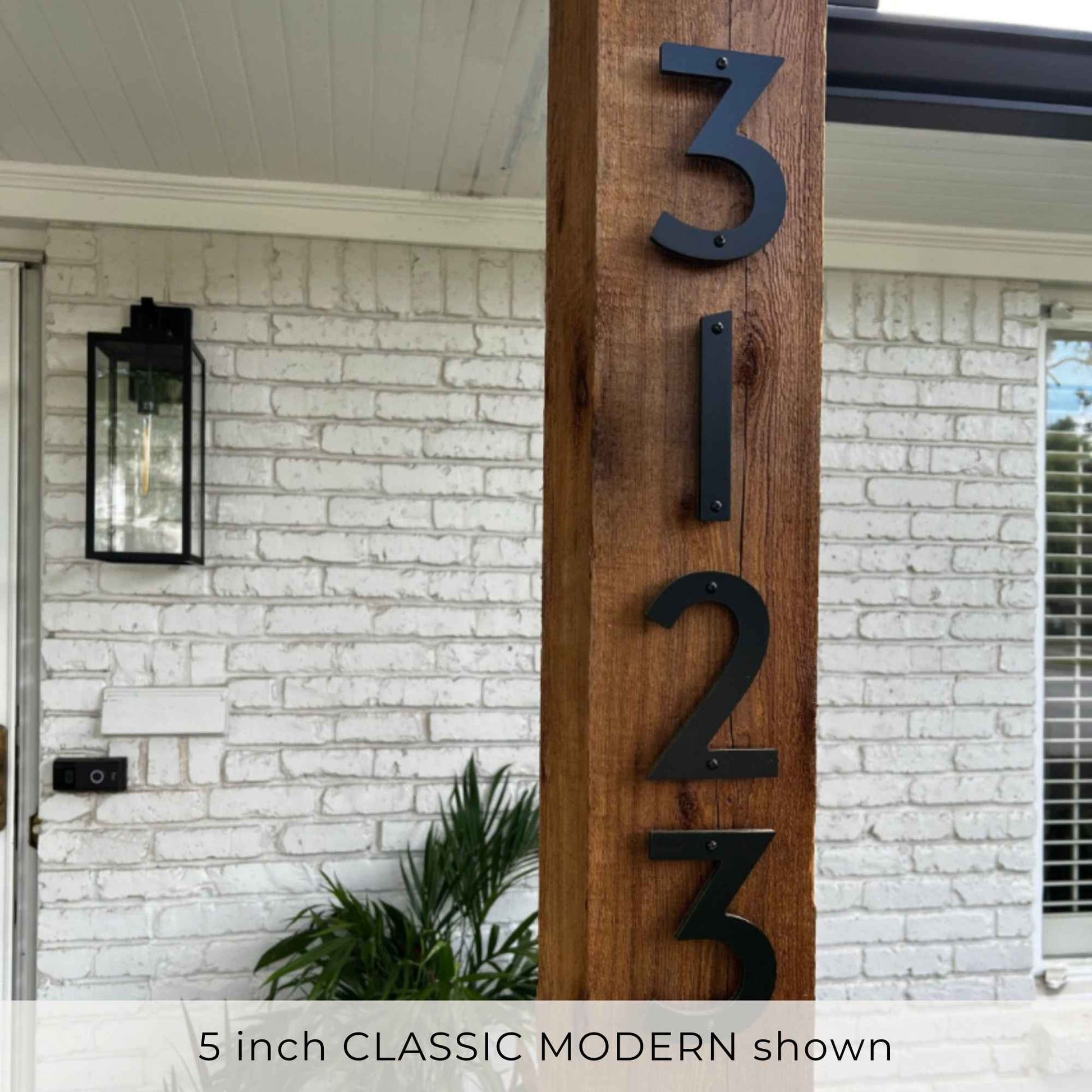 CLASSIC MODERN house numbers have effortless charm and sophisticated curb appeal that will enhance your front door. Available in matte black, white or brushed silver finishes for modern address signs that are easy to read on any color exterior. The 5 inch size is available with screws and standoffs for that floating look or a durable adhesive designed for outdoor use.