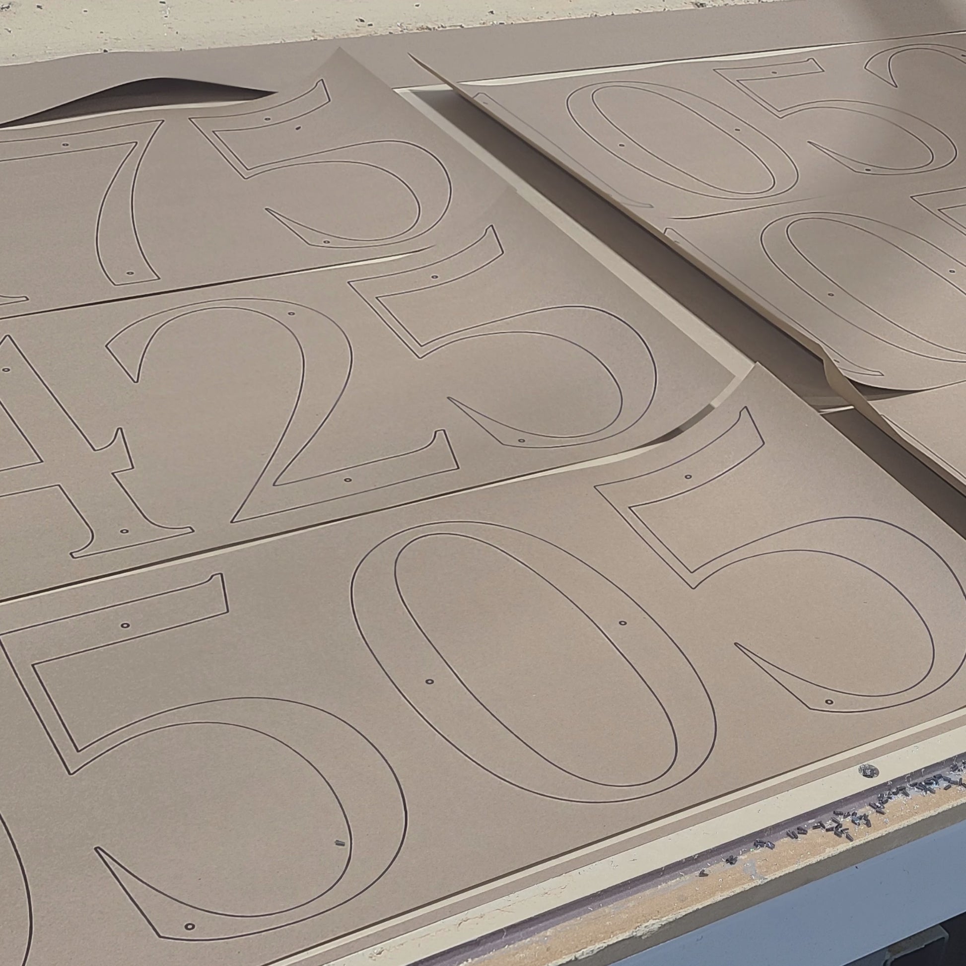What you get - a  template in a single piece (max overall size 48x96 inches) with your numbers and screw holes clearly marked. If your letters don't fit on on piece of paper, it will have a joint marked so you can easily connect them.
