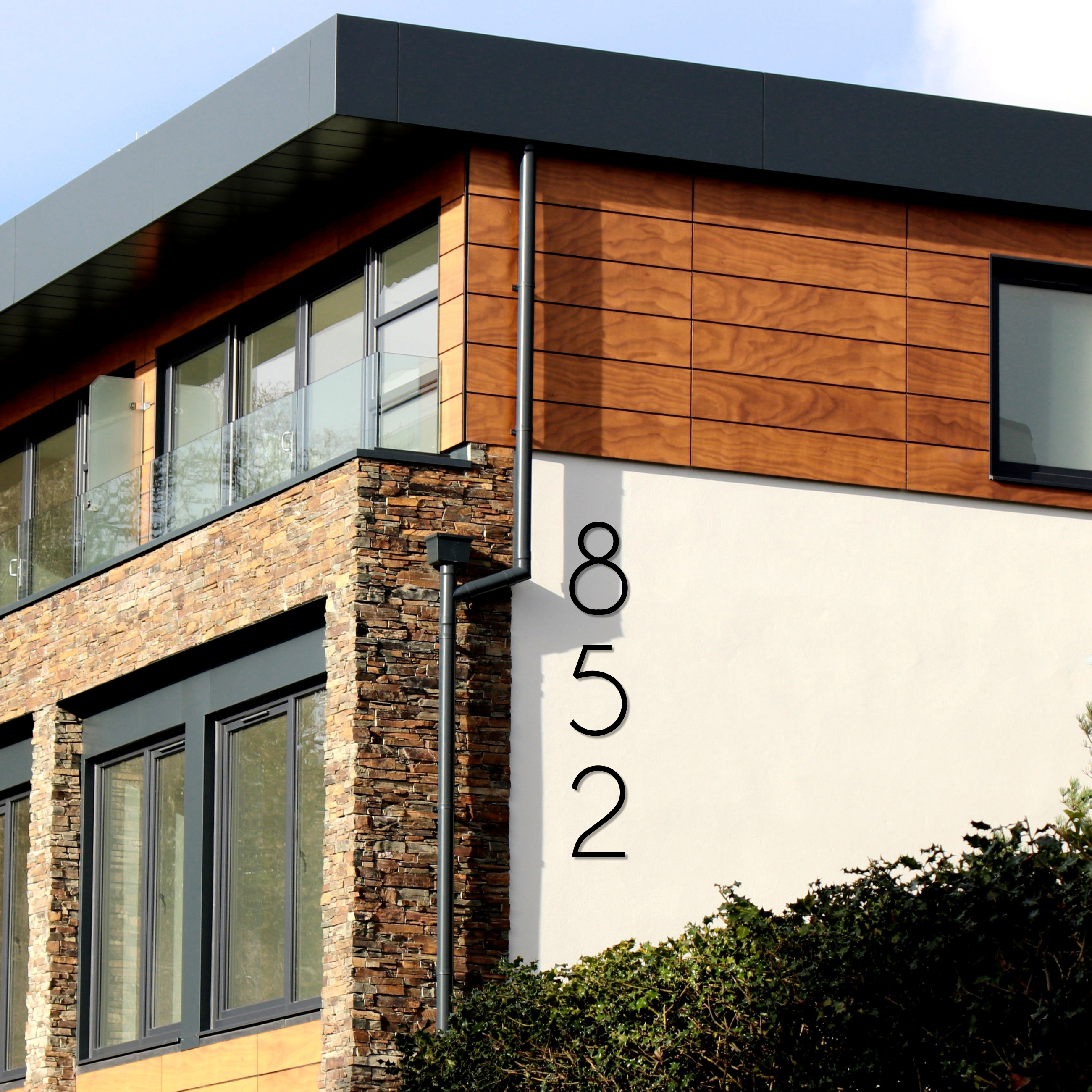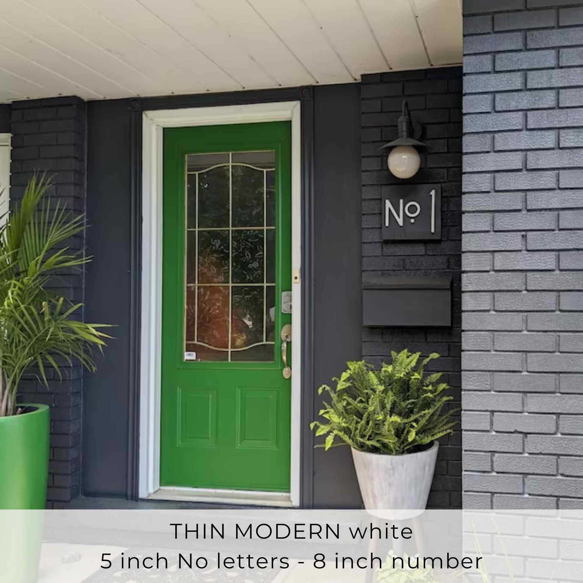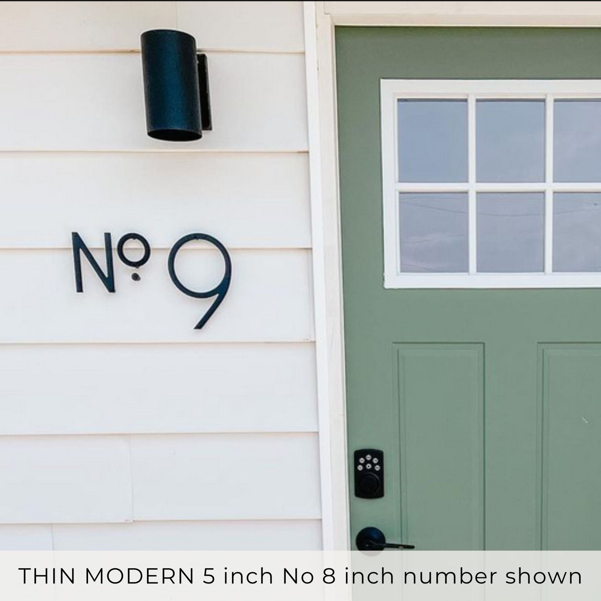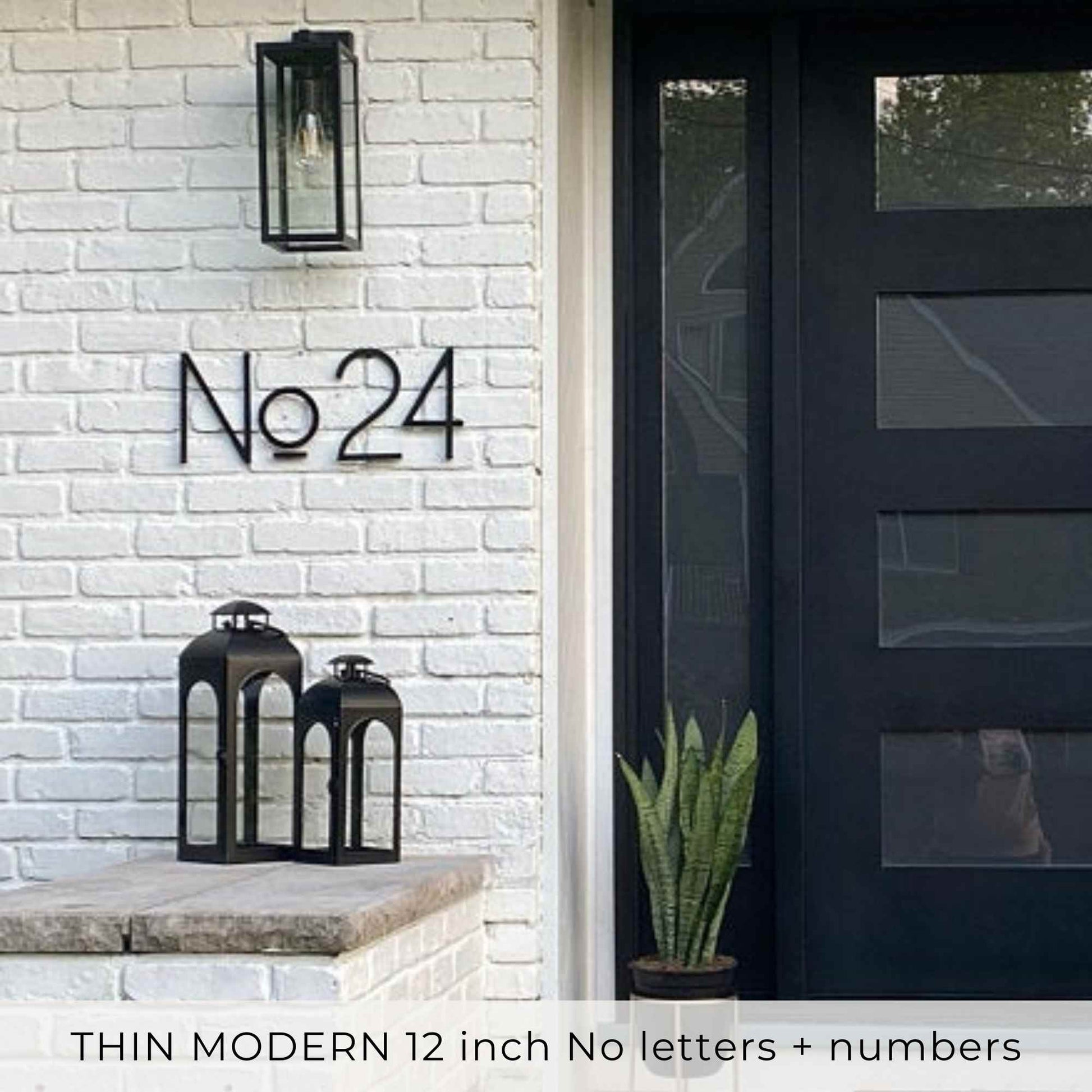 Get extra curb appeal with these house number letters. Use THIN MODERN No letters for an address sign with a modern farmhouse style or midcentury modern design. Fasten with stand offs for the floating look or choose adhesive for a tool free installation.