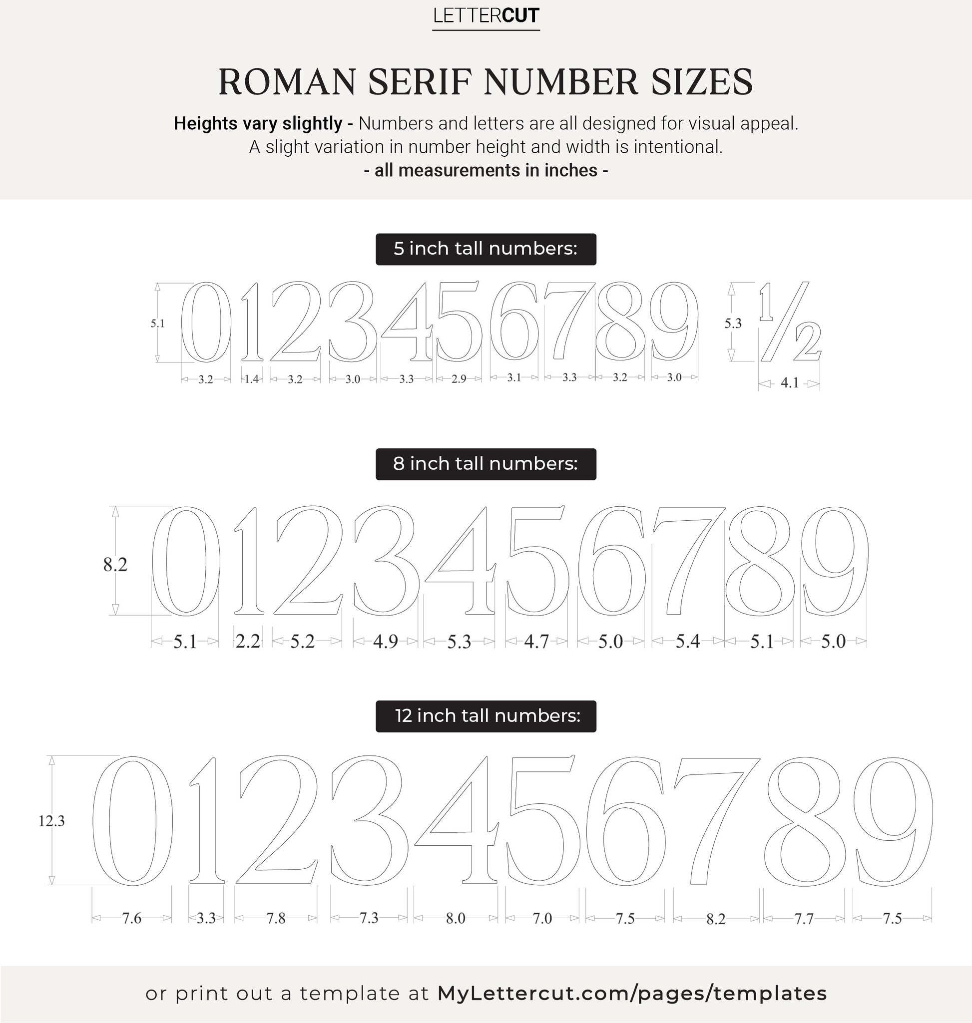 Use a template to get your modern numbers fastened evenly and straight OR to help you decide which size is right for your space.