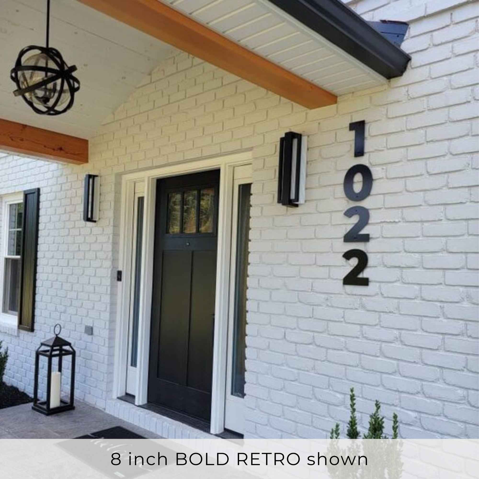 These BOLD RETRO house numbers are modern numbers that are easily visible even on brick or stone. Use address letters to spell your number, street or business name for an outdoor sign.