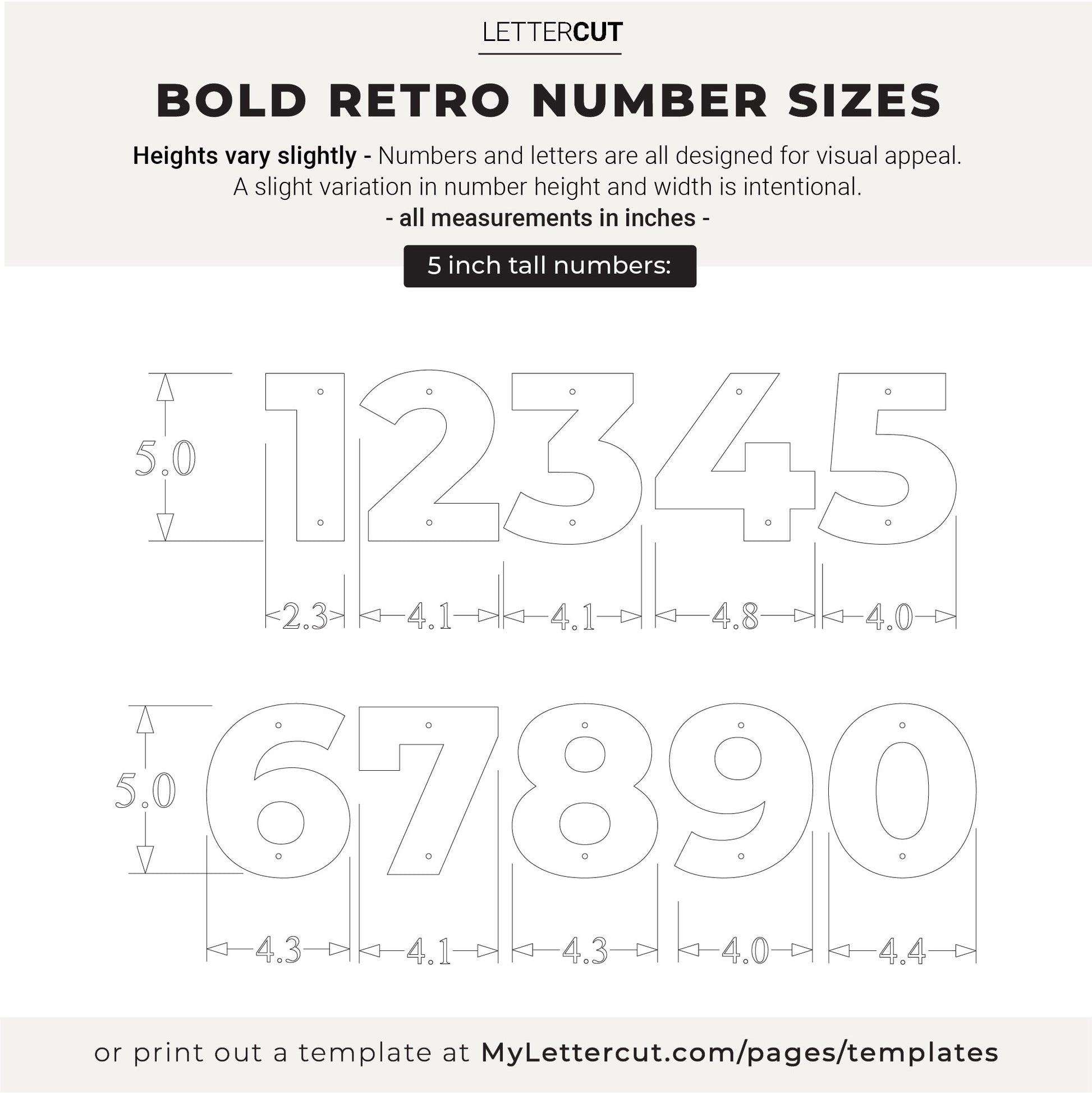 Use a template to get your modern numbers fastened evenly and straight OR to help you decide which size is right for your space.